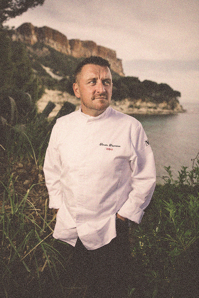 Normand d’origine, Dimitri Droisneau trouve sa singularité dans son amour du produit, dans sa rigueur millimétrée mais surtout dans son humilité sans borne. À la Villa Madie, il nous dédicace une cuisine qui suit le sillage des saisons et qui met en lumière le merveilleux terroir provençal. C’est donc en harmonie avec son environnement que ce chef talentueux orchestre avec précision et passion des créations badinant entre l’iode et la minéralité.
