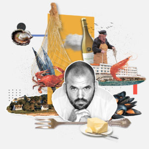 Je dirais les produits de la mer comme le crabe, l’araignée, les crevettes, les palourdes, les coques mais aussi l’étrille. Originaire de Bretagne, j’ai tout de suite baigné dans la pêche. Mes oncles étaient pour la plupart du métier et je partais d’ailleurs souvent en mer avec eux durant les vacances. L’odeur de l’iode, de l’air marin et du goémon faisaient partie de mon quotidien. Ma grand-mère était aux fourneaux, préparant la pêche du jour… Il n’y avait pas de recettes, c’était une cuisine de l’instinct.
