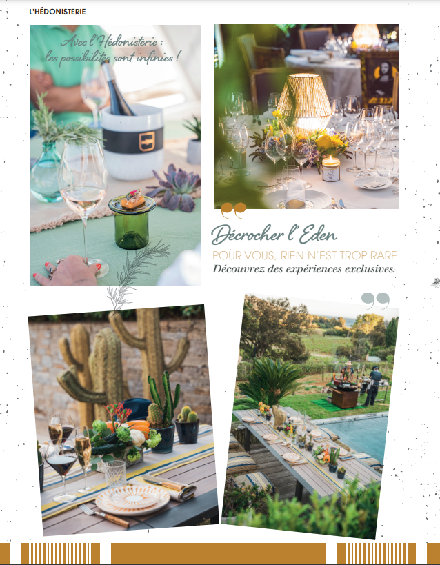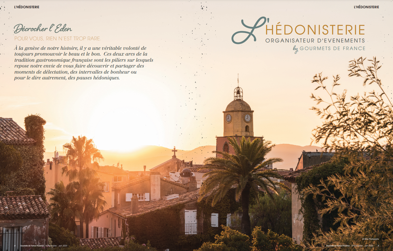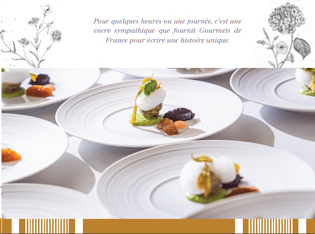 C’est donc transporté, comme c’est le cas depuis son origine, que Gourmets de France a fait éclore un éventail de possibles qui s’articulent autour du partage, de la convivialité, de l’inédit, du bon et du beau pour l’épanouissement de ses clients. Notre essence c’est le partage, c’est la convivialité, c’est être là où on ne nous attend pas. Parce que c’est résolument dans l’inédit, l’exceptionnel, le merveilleux qu’il y a l’effervescence d’une bulle de champagne, la luminescence d’une étoile filante et l’abondance d’une corne de générosité. Être hédoniste, c’est caresser du bout de la pulpe des doigts, le plaisir, de celui qui dessine des souvenirs inoubliables. C’est composer la promesse d’un instant de délicatesse, qui passe par l’éveil de tous les sens, qui allume la flamme du plaisir. Ce sont toutes ces petites pépites de bonheur, que, en orpailleur, Gourmets de France est allé trouver.