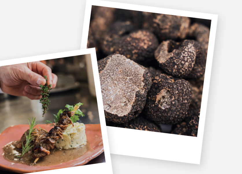 Avec ce vin de caractère on peut aisément aller chercher des plats à base de truffe, une belle pièce de viande rôtie ou encore un tournedos Rossini.