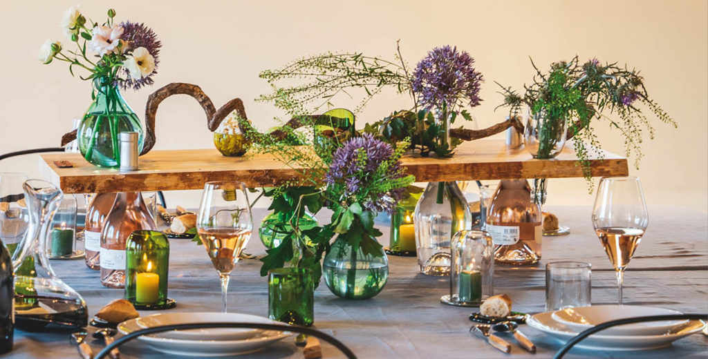 Dans son atelier, Margaux impose un management qui lui est propre. Ici, chacun apporte sa pierre à l’édifice en toute autonomie et toute confiance. La jeune entrepreneuse n’édicte pas un rythme particulier mais seulement le travail bien fait et dans les temps. Culo met également au placard le côté moralisateur et sans vie des produits dits écologiques et crée à l’inverse un univers sympathique, coloré et bon vivant. Pour « collecter » la matière première, Margaux fait un gros travail de prospection auprès des domaines viticoles, des restaurateurs, des entreprises d’embouteillage et des verreries. Chaque bouteille est ensuite triée, désétiquetée, découpée, poncée, polie ou non selon la finition choisie, puis nettoyée, empaquetée et livrée ! Ainsi voient le jour, des verres, des carafes, des sous-bock mais aussi des vases et des photophores aux couleurs cristallines et profondes allant du vert bouteille aux notes plus ambrées. Pour ce qui est des planches et des plateaux, les bouteilles passent, quant à elle, au four à 800 degrés. Ici, chaque pièce est unique et garde autant que faire se peut les marques de son passé. Nul doute, Margaux a su manier local et environnement à la perfection, devenant actrice de l’économie circulaire et prônant une démarche écoresponsable et solidaire… Chapeau l’artiste !