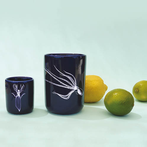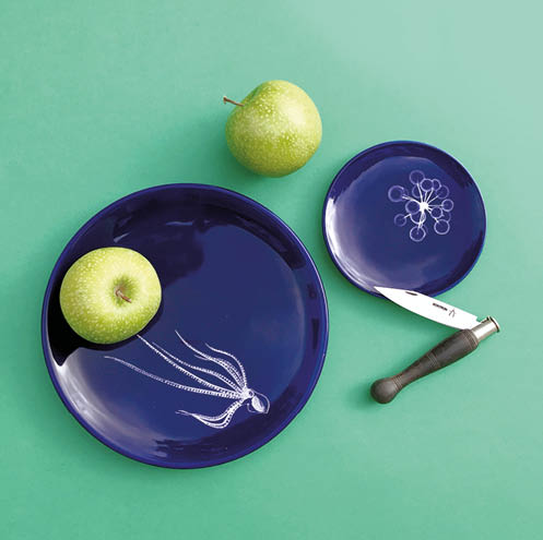 De la terre au décor, du façonnage au dernier coup de pinceau, Faïencerie Georges s’attache à respecter les bons préceptes d’antan. Ici, tout se fait à la force et à la délicatesse de la main… Chaque pièce requiert plusieurs heures de travail minutieux et pas moins de 30 étapes différentes. Un labeur qui demande patience et dévotion mais qui voit surtout émerger toute la splendeur du beau et de l’unicité. Certains assiettes, gobelets et vases arborent fièrement le blanc étain et le bleu cobalt, essence même de l’art de Nevers. En témoigne la collection ABYSS et ses créatures marines fantasmagoriques qui ne saurait laisser indifférente. La spécificité de la maison est sans nulle doute, la décoration sur émail cru, un savoir-faire rare et exigeant rendant hommage à un talent pictural reconnu. Les couleurs, composées d’oxydes métalliques, sont appliquées au pinceau et à main levée. Un véritable travail d’orfèvre pour des ouvrages tout aussi précieux et délicats. Pour les pièces du quotidien qui se veulent plus solides, l’atelier utilise la chromographie, une technique de décoration par transfert. Les pièces sont ensuite recuites une 3ème fois, permettant de fusionner le chromo avec l’émail et de le rendre inaltérable.