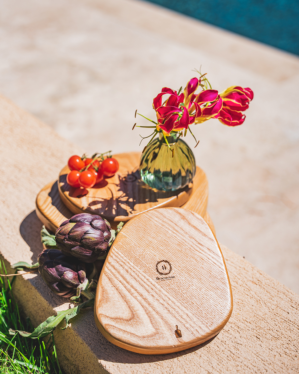 À découper, à tapas, à charcuterie, à fromage, de service, billots… Les planches de l’atelier sont un éloge à l’authenticité et à l’esthétisme. À l’aise en cuisine comme sur les tables, elles badinent entre modernité et sobriété dans un esprit rustique et définitivement contemporain. D’ailleurs ce n’est pas un hasard, si elles sont autant appréciées des chefs français et étrangers. Robustes et élégantes, les planches viennent embellir les tables et permettent aux cuisiniers amateurs comme aux professionnels de sublimes présentations. Réalisées à partir d’essences variées de bois tels que le chêne, l’orme, l’hévéa, le noyer ou le hêtre, elles misent sur un design fonctionnel aux formes multiples surprenant par leur simplicité et leurs lignes toujours épurées. Du côté de la personnalisation et au bon vouloir des clients, elles peuvent arborer une plaque en laiton gravée, une gravure au laser ainsi qu’un cordon cuir de couleur.