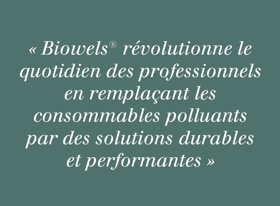 Biowels® accompagne également les professionnels dans l’obtention et le maintien de certifications éco-responsables reconnues, telles que La Clef Verte, Ecotable ou ISO 20121, grâce à des produits conformes aux standards de durabilité. Biowels® révolutionne le quotidien des professionnels en remplaçant les consommables polluants par des solutions durables, performantes et accessibles ».