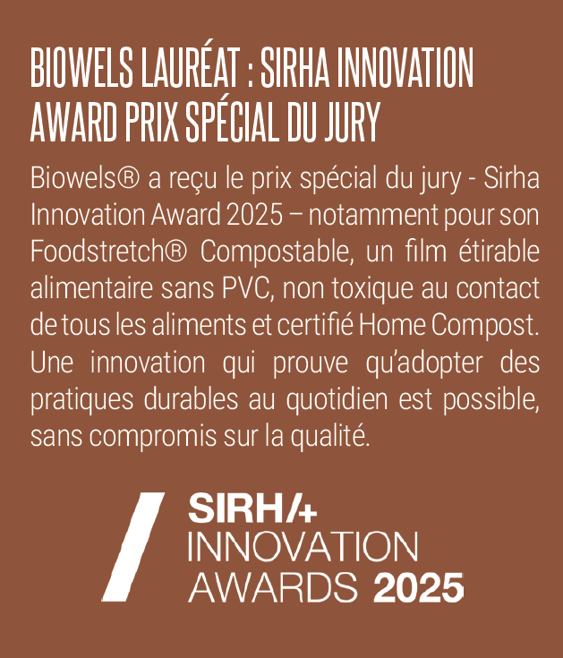 Biowels® propose des serviettes, torchons et liteaux sur base de fibres de bois certifiées FSC et compostables (Ok Home Compost). Ultra absorbants (jusqu’à 10 fois leur poids) et hygiéniques, ces produits pratiques accompagnent cuisiniers et serveurs à pratiquées chaque étape, du ménage au service, tout en réduisant l’empreinte écologique. Des sacs poubelle compostables pour une gestion responsable des déchets Biowels® complète sa gamme avec des sacs poubelle compostables, disponibles dans de nombreux formats pour s’adapter à tous les besoins. Ces sacs, conçus pour réduire les déchets plastiques, incarnent l’engagement de la marque envers une économie circulaire et une réduction de l’impact environnemental.