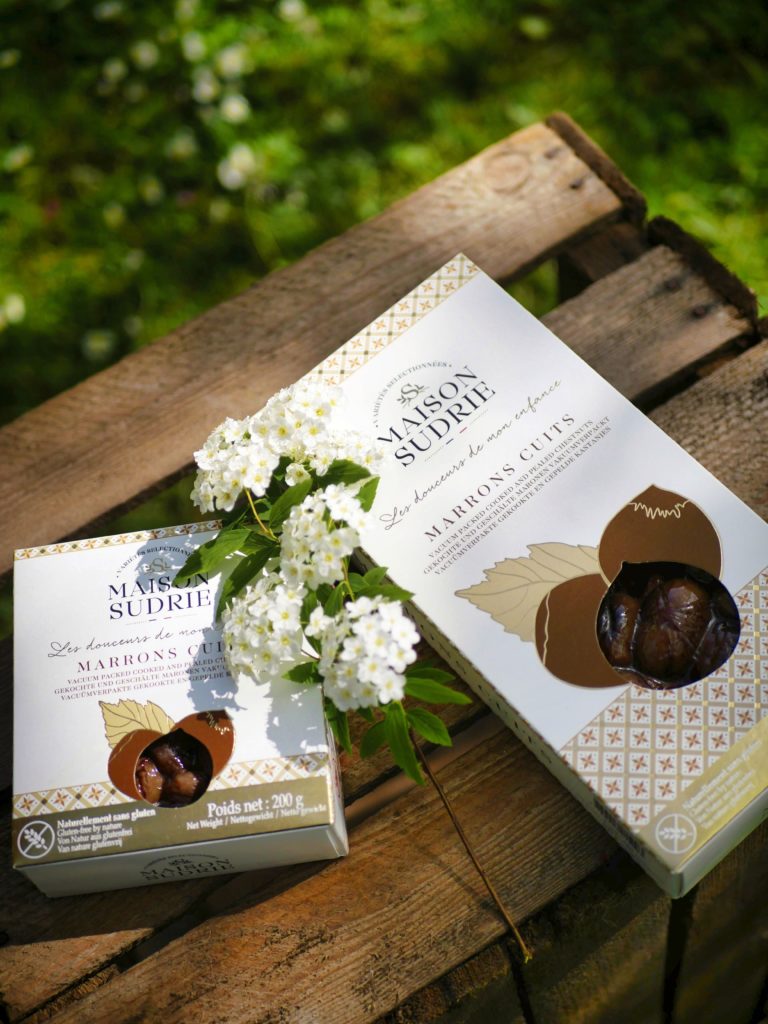 Choisir la Maison Sudrie, c’est avoir la garantie de savourer des châtaignes au goût intense 100 %« made in Nouvelle-Aquitaine ». Produites en Corrèze, elles sont ensuite transformées dans des ateliers en Dordogne. Un choix de raison au service du goût… Ici, les méthodes de production se veulent responsables et éthiques et les châtaignes récoltées à la main sont minutieusement sélectionnées. Naturels à cœur, les produits transformés sont quant à eux, sans additifs ni conservateurs et exhalent leur goût originel grâce à un savoir-faire artisanal. Ainsi, les marrons sont décortiqués à la flamme et sont ensuite triés puis cuits sous vide à la vapeur et emballés, le tout en parfaite conformité avec les exigences de la certification IFS.
