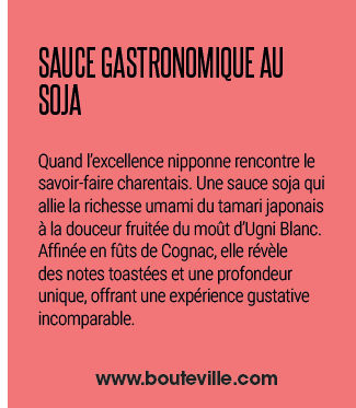 Au cœur du prestigieux vignoble de Cognac, La Compagnie de Bouteville réinvente l’art du goût donnant vie à des vinaigres de vin blanc et une sauce soja d’exception. Chaque goutte incarne le savoir-faire artisanal français, pensé pour les chefs et offert à tous les épicuriens en quête d’émotions culinaires. Des balsamiques et des condiments raffinés qui ne se contentent pas d’accompagner vos partitions, mais qui les transforment en véritables chefs-d’œuvre, de l’assiette au verre !