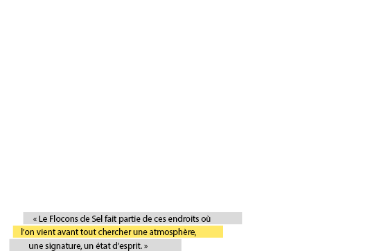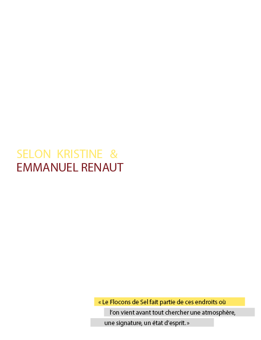 parfois de l’argenterie, selon l’inspiration du moment. La vaisselle, quant à elle, est conçue sur mesure par des céramistes talentueuses, comme Elisabeth Monroy, Sylvie Coquet ou Virginie Boudsocq. Les assiettes, façonnées à la main, deviennent de véritables oeuvres d’art qui subliment la cuisine du chef. Mais plus encore que le décor, c’est l’atmosphère qui fait la singularité du Flocons de Sel. Ici, l’hospitalité est pensée comme une évidence, loin des codes parfois rigides de la haute gastronomie. « Il faut que ce soit naturel. Il faut s’éloigner des codes surfaits et rester soi-même dans la simplicité ». L’accueil est