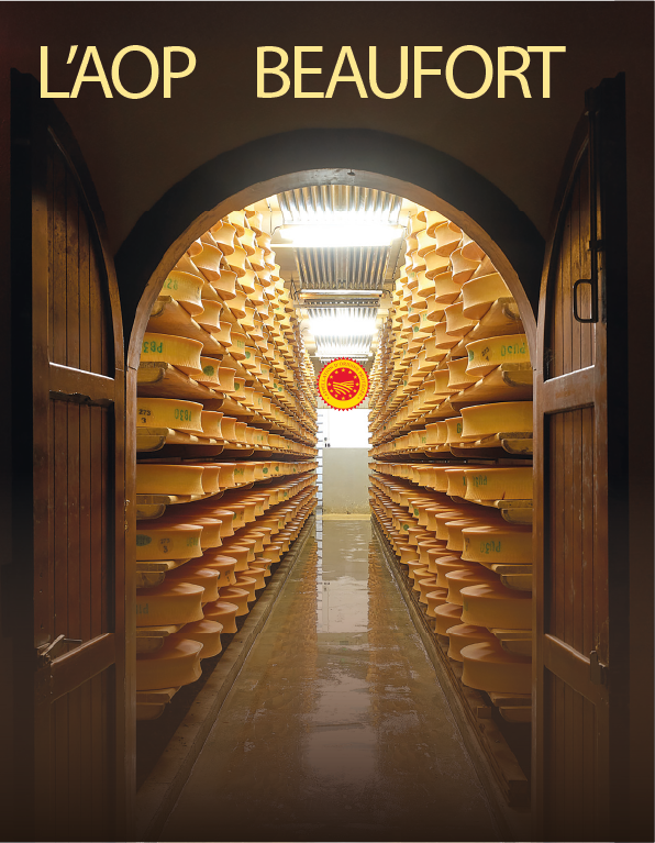 Près de 1000 emplois pour 335 exploitations laitières et ateliers de transformation dont 7 coopératives laitières à gestion directe travaillent chaque année à la fabrication du Beaufort, dans le respect strict de son AOP obtenue en 1968. Son territoire, limité aux hautes vallées savoyardes (Beaufortain, Tarentaise, Maurienne et une partie du Val d’Arly), offre aux Tarines et Abondances une alimentation naturelle qui façonne un lait d’exception, limitant à une production maximale de 5000 kg par vache et par an. Chaque détail compte : levains naturels soignés, toile de lin, cercle de bois, autant de traditions préservées. Une plaque de caséine assure sa traçabilité, tandis qu’un affinage minimum de 5 mois lui confère toute sa richesse aromatique.