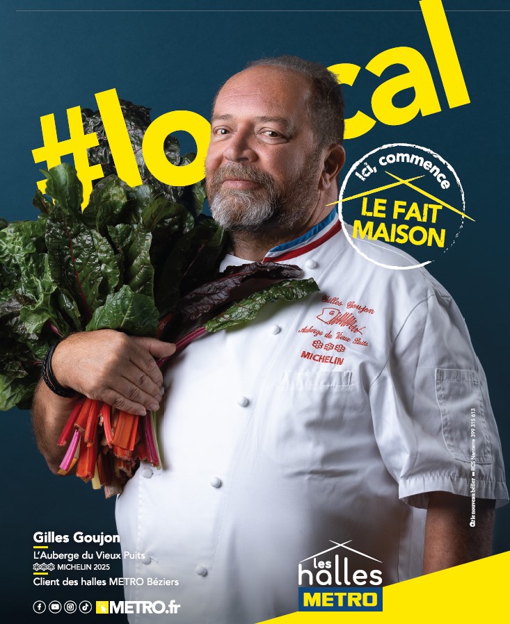 Avec sa campagne « Ici, commence le fait maison », MÉTRO met en lumière les visages de chefs de tout horizon (brasserie, haute gastronomie, snacking) et met également à l’honneur des produits bruts, frais et locaux propices à la transformation artisanale, véritables piliers du savoir-faire culinaire. Dans ses Halles, MÉTRO s’engage donc à faire le choix de produits authentiques, d’une qualité irréprochable ainsi qu’à apporter un soutien aux communautés locales. De fait, 70 % de son offre est composée de produits non transformés, pour laisser libre cours à la créativité des chefs.