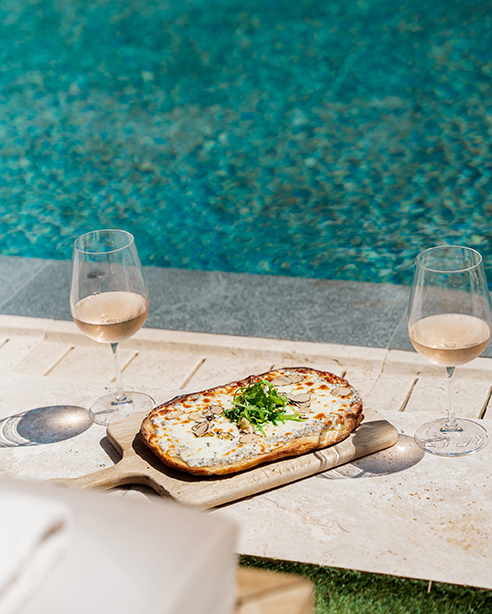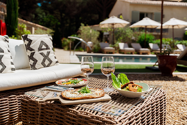 À deux pas de la piscine, Le Cabanon distille tout au long de la journée une partition gourmande et rafraîchissante, pensée pour contenter tous les palais. Le nouveau chef Julien Mouniguet, enfant du pays, signe une cuisine méditerranéenne aussi simple que raffinée, fraîche et généreuse, parfois même ponctuée d’exotisme. Sa carte évolue au gré des saisons tout comme l’ardoise du jour, inspirée de ses envies du moment. On se laisse tenter par des planches à partager, des pinsas, des salades estivales, des carpaccios et tartares, des clubs et bagels ainsi que quelques douceurs sucrées. Côté boissons, on découvre une jolie carte de vin, spiritueux, bières et cocktails, sans oublier les jus frais et détox ! À l’heure dorée de l’apéritif, le chef accompagne les drinks de petites préparations maison aux couleurs de la Provence. Et à l’heure du petit déjeuner, un buffet aux maintes saveurs – avec option vegan, sans gluten et sans lactose – ravit les amateurs de sucré comme de salé.