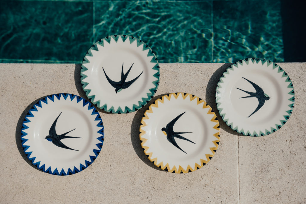 Avec sa nouvelle collection « Hirondelles », Faïencerie Georges réconcilie l’art et l’usage, le fait main et le quotidien. Ainsi, l’assiette bistrot devient une toile vivante, où le pinceau esquisse des hirondelles en plein vol, messagères d’horizons ensoleillés. Inspirés des faïences « à la touche » en vogue à Nevers au XIX° siècle, les motifs se parent d’un trait « volontairement naïf », assumé, dont l’irrégularité insuffle une âme singulière à chaque pièce. Sur le pourtour, une frise éclot en quatre couleurs vibrantes évoquant l’éclat méditerranéen. Pensée pour être mélangée, associée, réinventée, cette collection invite à composer une table libre et intemporelle.