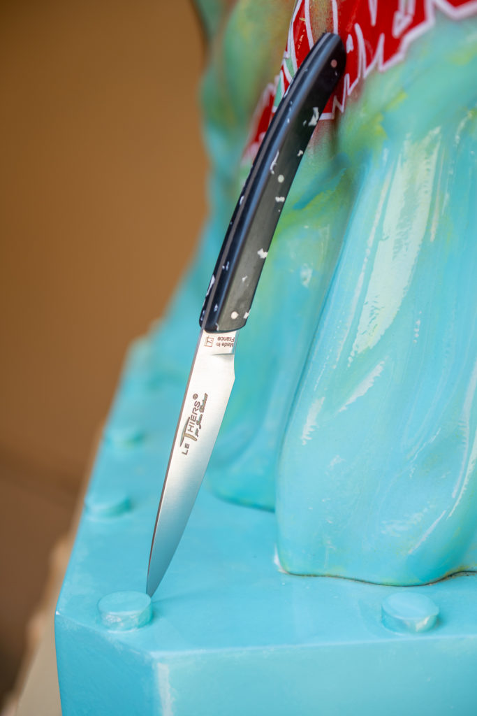De la montagne Thiernoise à l’Élysée, des tables étoilées aux maisons du bout du monde, Jean Dubost incarne un art de vivre « Origine France Garantie », célébré dans plus de 60 pays. Dans chaque atelier, les gestes anciens – montage, ajustage, façonnage, polissage – se transmettent comme une danse secrète, précise et souple. À l’heure du meulage, l’acier chuchote sa vérité, guide la main, donne le cap, devient boussole du coutelier. Car ici, une lame n’est jamais simple outil, elle est équilibre, tension entre force brute et élégance racée. Elle épouse la main de son propriétaire, vieillit, se patine, s’affine jusqu’à devenir un compagnon d’âme, qui pour certains se transmet.