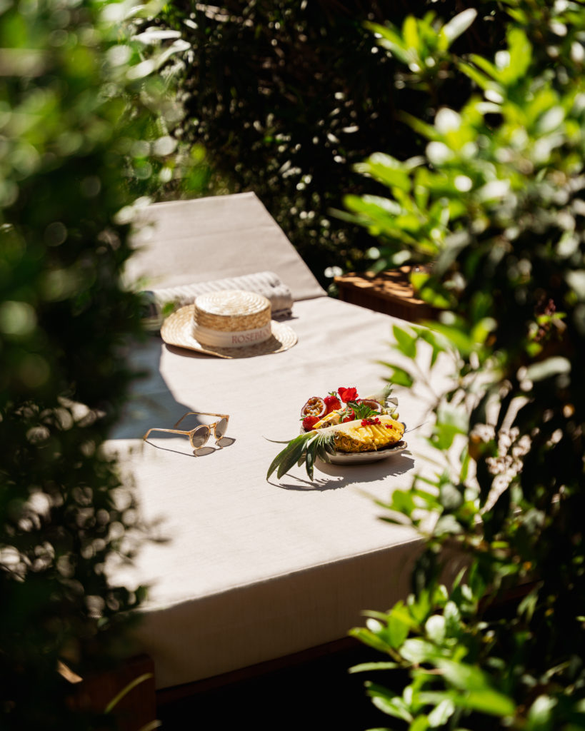 Hôtel 4 étoiles au cadre intimiste, la Bastide des Salins invite à une parenthèse douce, presque initiatique. Dès que l’on franchit le grand portail en fer forgé, le silence s’impose comme un luxe enveloppant, signant le début d’un éden de sérénité. L’accueil chaleureux, rappelle celui d’une maison de famille que l’on retrouve avec bonheur. On se sent bien, déconnecté. On pose ses valises et on respire. Sur le pourtour de la piscine chauffée, un cocktail de fruit frais à la main, on laisse filer le temps. Les beds en bois clair, couronnés de parasols aux tonalités beige, ne sont pas sans rappeler le sable chaud des salins. Les jardins arboré et luxuriant, eux, invitent à la flânerie, laissant le temps s’égrainer à la clameur de l’été. Sous les palmiers, platanes, eucalyptus et autres essences exotiques, de petites alcôves aménagées permettent de savourer l’instant, un livre à la main ou en partageant une planche de dégustation.
