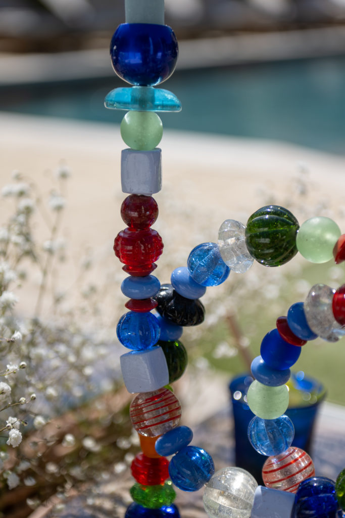 Discret et spectaculaire à la fois, le bougeoir Beads est une création captivante qui tisse le fil de la poésie en verre recyclé. Perle après perle, entrelacées, telles des pierres précieuses, elles créent une collection de souvenirs figés dans le verre.