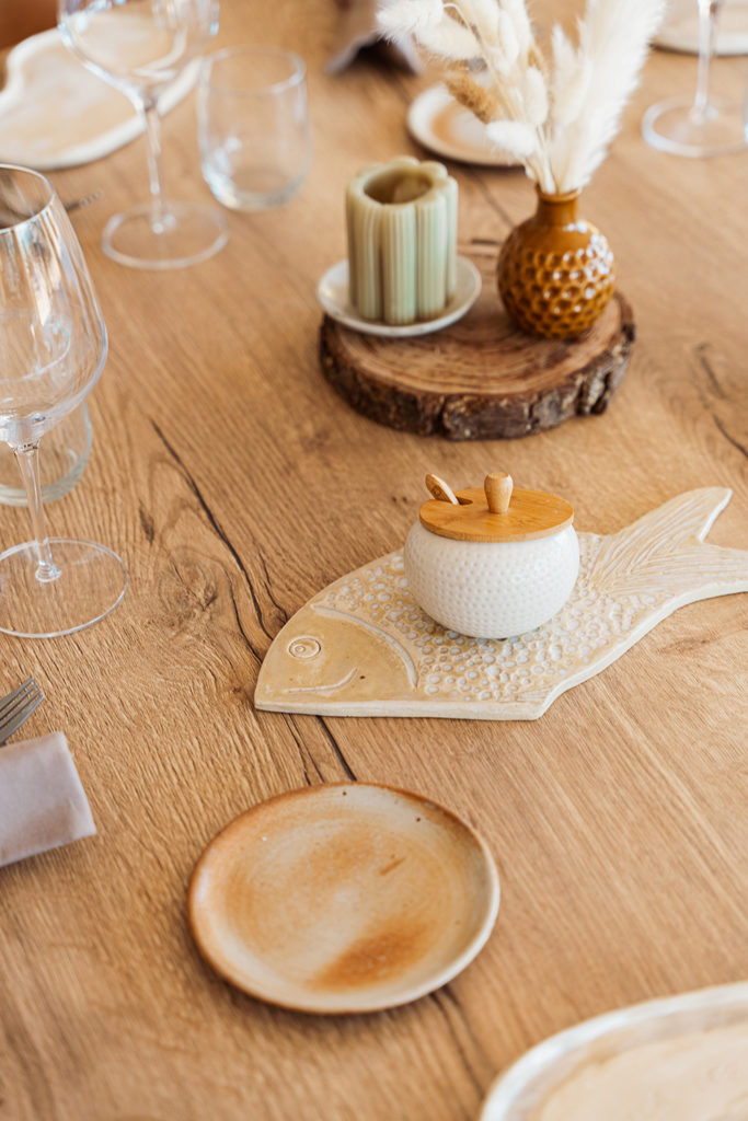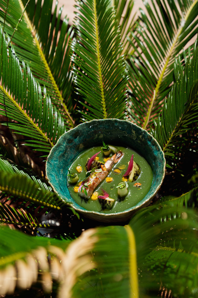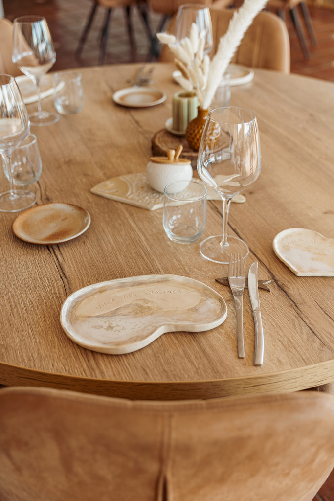 Baroudeur dans l’âme, le jeune chef glisse sous sa toque l’expérience des belles tables et un goût prononcé pour les saveurs d’ailleurs, glanées au fil de ses pérégrinations. Et cela se ressent dans l’assiette… Des partitions fines, au cordeau, visuellement séduisantes, sublimant le produit sans artifices inutiles. Un subtil jeu de contrastes entre amertume, acidité et sucrosité… Le goût s’ancre, la créativité s’envole. La carte, simple et resserrée, évolue chaque mois, au gré des inspirations du chef. En salle, l’atmosphère est chaleureuse, laissant s’exprimer les camaïeux beige et brun. Le ballet est fluide, l’échange facile et les tables se parent de céramiques maison – réalisées par la mère du chef –, de bois naturel et d’herbe de pampa. On vient ici pour passer un bon moment, toujours dans la simplicité de l’instant.