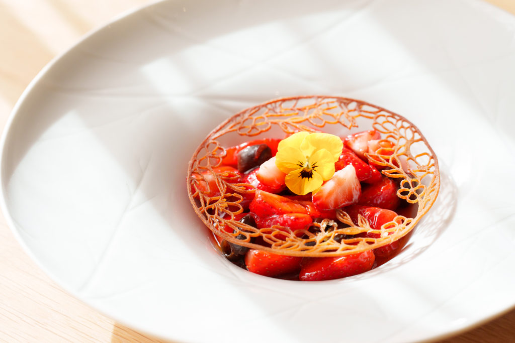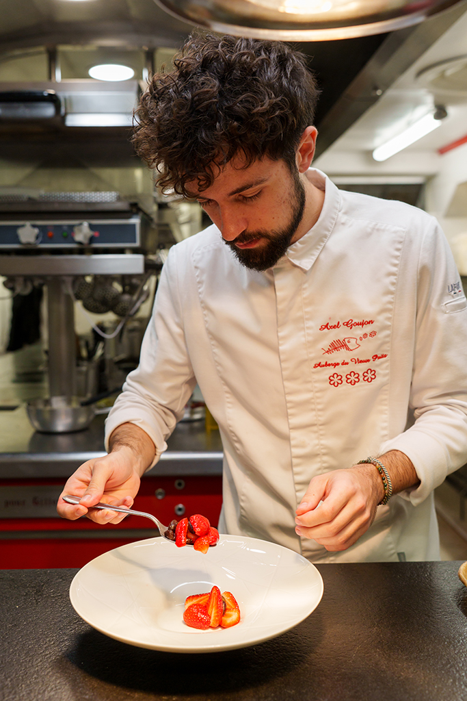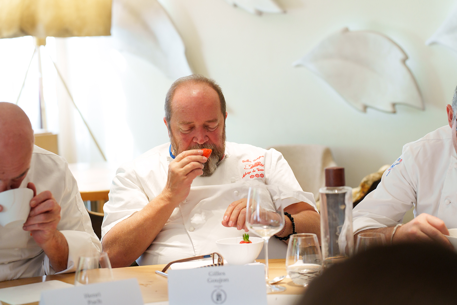 « Un bon goût de fraise pour la saison, avec une légère pointe d’acidité que j’utiliserais volontiers pour apporter du peps à un plat », explique Gilles Goujon. Enzo Goujon évoque « de belles fraises en devenir, avec un parfum qui commence à se développer ». Axel Goujon souligne « une jolie couleur, une belle aromatique et une sucrosité encore légère », qu’il imagine « en salade de fraises ». Pour Julien Teyssandier, ce sont « des fraises intéressantes à travailler, déjà marquées par une petite acidité prometteuse ». Corentin Mateille parle d’« une fraise acidulée et gourmande avec une bonne texture », tandis que Jean-Luc Danjou évoque « une fraise charnue, à la saveur agréable sans excès ». Alexis Defever met en avant « une belle aromatique avec un sucre encore léger », et Charles Fontès insiste sur « une fraise de début de saison, ferme, subtile et de qualité ». Dominique Bouchait apprécie « la couleur, la texture et une fraise prometteuse encore subtile en goût », quand Henri Poch souligne « une concentration d’arômes avec une belle acidité, idéale en dessert ». Vincent Labarsouque conclut sur « une fraise parfumée, brillante, à la jolie texture ».